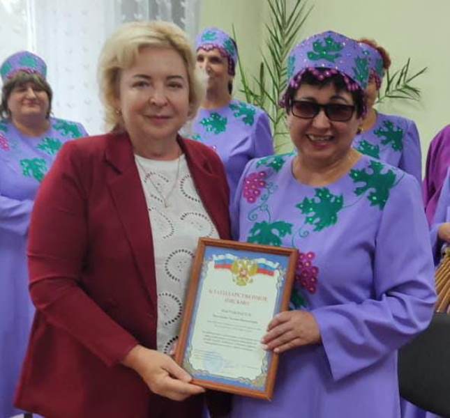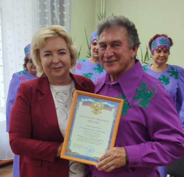 Были вручены благодарственные письма председателю МО ВОС Галине Васильевне Нестеровой и художественному руководителю ансамбля Виктору Георгиевичу Куклину за многолетнее плодотворное сотрудничество в сфере социальной поддержки инвалидов по зрению, а также сладкие подарки коллективу ансамбля.