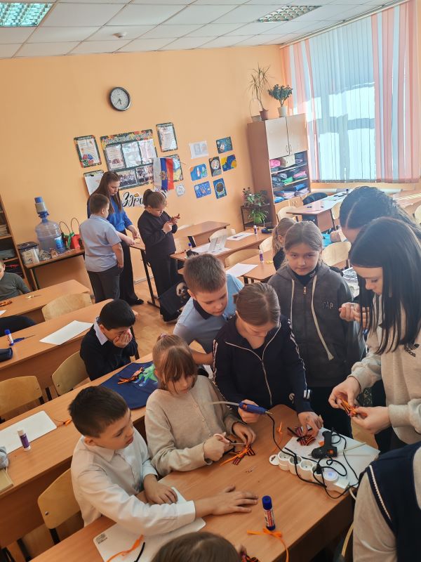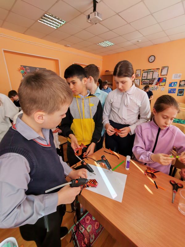 Стремясь привить подрастающему поколению уважение к истории и уважение к памяти павших героев, специалисты из клуба замещающих семей «Ласточка» организовали совместное мероприятие с учениками 3 «В» класса МБОУ «СОШ № 51». Целью нашей акции стало создание памятных значков из георгиевской ленты, которые каждый ребенок смог бы с гордостью носить в преддверии праздника. Это не только возможность сохранить память о Великом Дне, но и способ выразить свою личную причастность к этому событию.