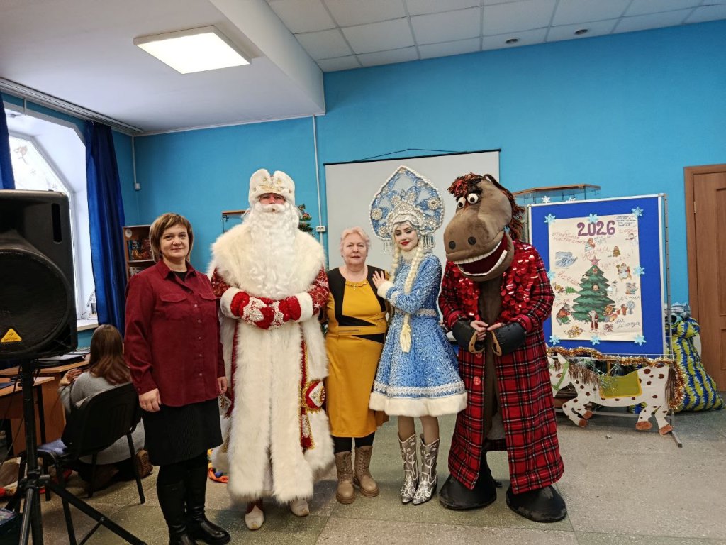 Детей ждала волшебная программа с любимыми героями: добрым Дедом Морозом, очаровательной Снегурочкой и самым неожиданным гостем — Конём в пальто! Этот оригинальный персонаж символизировал наступающий 2026 год, который по восточному календарю считается годом Лошади (Огненной Лошади).