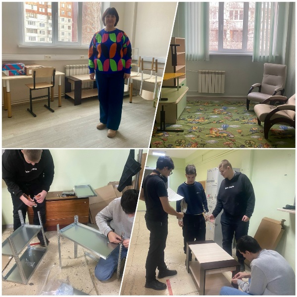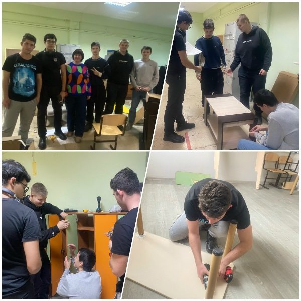 Студенты транспортного техникума и активисты «Русской Общины» приняли участие в сборке мебели и оборудования для Центра.