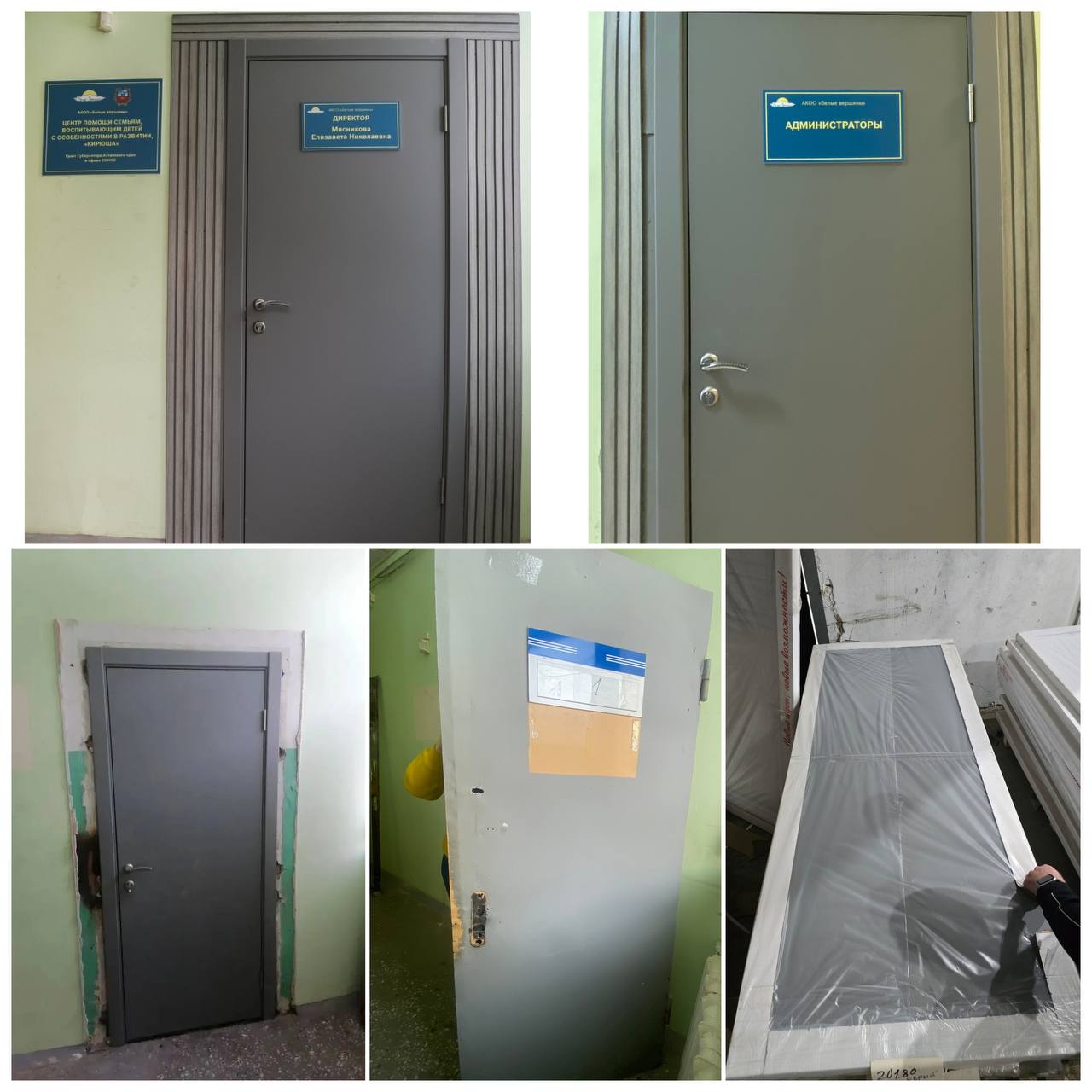 Накануне открытия «Центра помощи семьям, воспитывающим детей с особенностями в развитии «Кирюша», поддержанного Грантом Губернатора Алтайского края, организации АКОО «Белые вершины» оказана практическая помощь. Компания ИП Лютиков А.С. изготовила и поставил двери для кабинетов центра, а их установку выполнила компания «А-Двери», привлеченная Барнаульским отделением «Русской Общины».